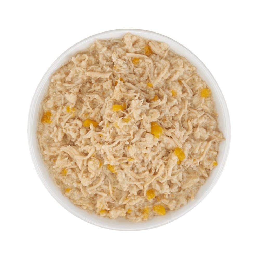 الدجاج 60٪ ، مرق الدجاج 26 ٪ ، زيت عباد الشمس المكرر ، اليقطين ، نشا التابيوكا ، المعادن ، زيت التونة ، مسحوق الكركم ، مستخلص الشاي الأخضر.