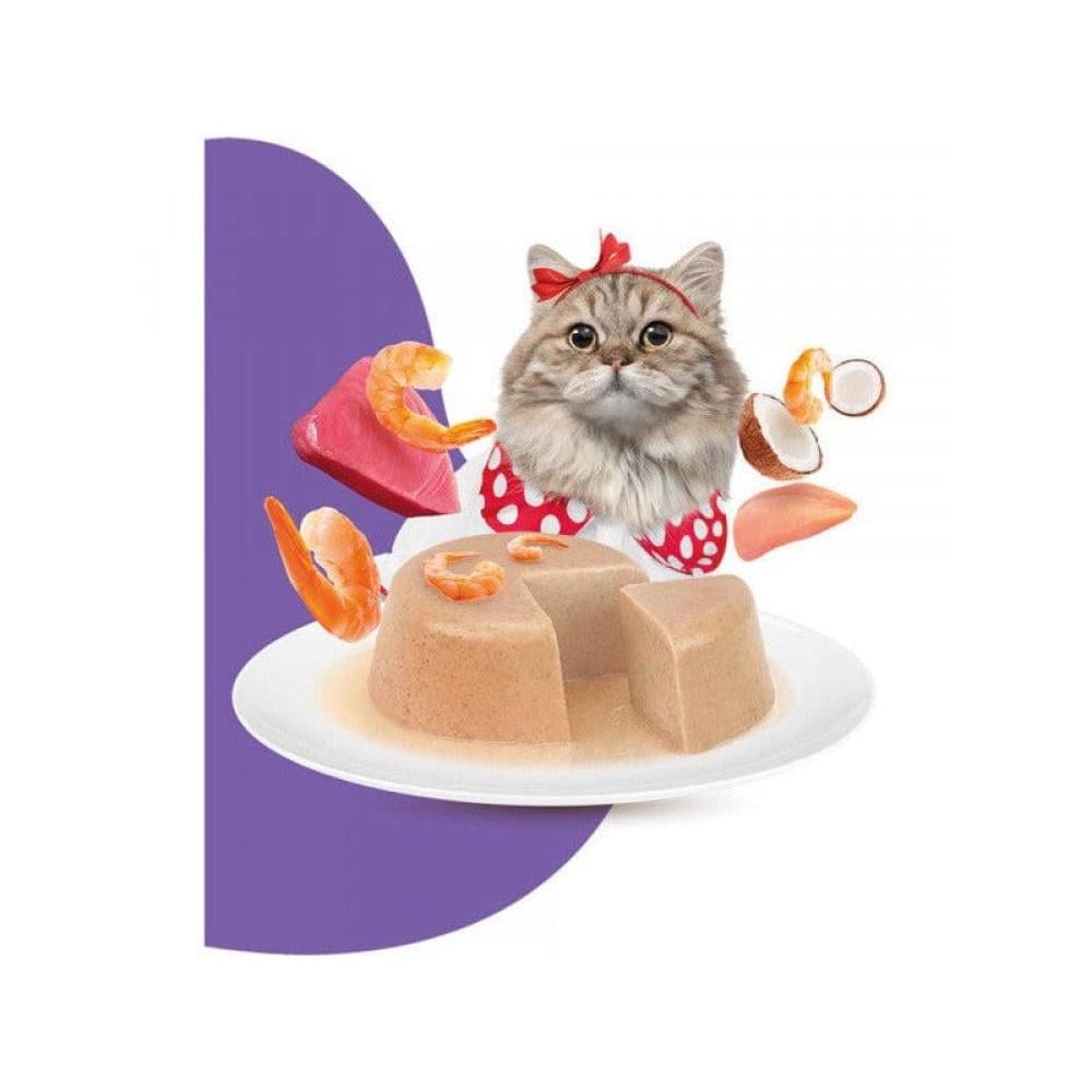 أغرق حواسك وحواس قطتك بعالم المحيط مع موتشي، اكل قطط الرطب الذي يقدم تجربة طعام لا تُنسى. مع الجمبري اللذيذ والمرق الغني، سيستمتع قطك بكل لحظة من وجبته.