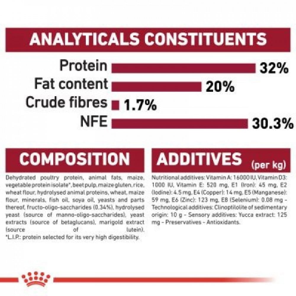 - هضم سلس وصحة الأمعاء: يساعد طعام رويال كانين المتوسط الحجم على دعم صحة الجهاز الهضمي لجروك، ويحافظ على توازن الأمعاء وسهولة الهضم.
