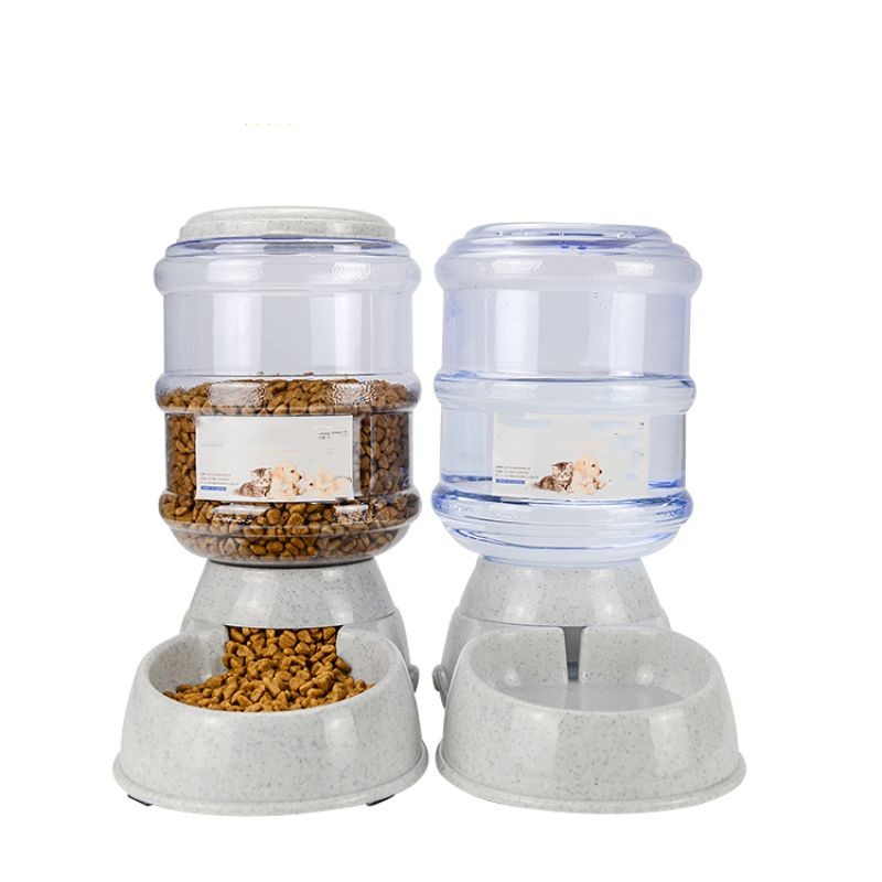3.8L pet food storage bowl, 3.8L water storage bowl. The capacity is large, and there is no need for the pet to worry about being hungry when leaving the house. Transparent bowl, the amount remaining in the bowl is clear at a glance, and the water and food are automatically replenished in time, so you no longer worry about pets being hungry. The food grain output is smooth and not stuck, and the grain outlet is expanded by gravity inclined at a 45 degree angle, and blockage is avoided. Large capacity, to meet your pet's needs for a long time, 3.8L capacity to store dry food and water, which can meet the drinking water needs of cats for a week.