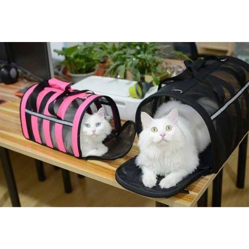 • رؤية ومراقبة مريحة: التصميم الشبكي يتيح لك ولحيوانك الأليف رؤية بعضكما البعض، مما يقلل من شعور القلق أثناء التنقل.